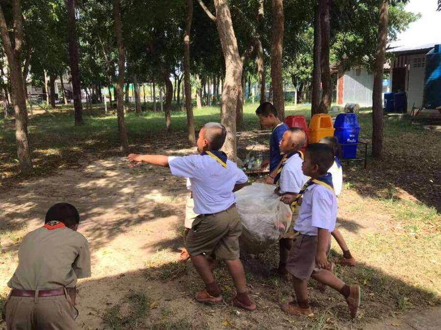 คณะครู นักเรียนร่วมกันทำความสะอาดรอบ ๆ หมู่บ้าน โดยทำให้ชาวบ้านดูเป็นตัวอย่าง S:0