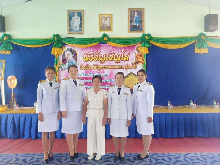 เมื่อวันที่ ๒๑ กันยายน พ.ศ. ๒๕๖๒ โรงเรียนวัดบ้านจอม ได้จัดพิธีอัญเชิญดล่โรงเรียนวิถีพุทธ พระราชทาน รุ่นที่ ๓ โดยมีนายเสริมฤทธิ์ หวายฤทธิ์ธนกุล ผอ.สพป.บุรีรัมย์ เขต ๒ เป็นประธานในพิธี S:0