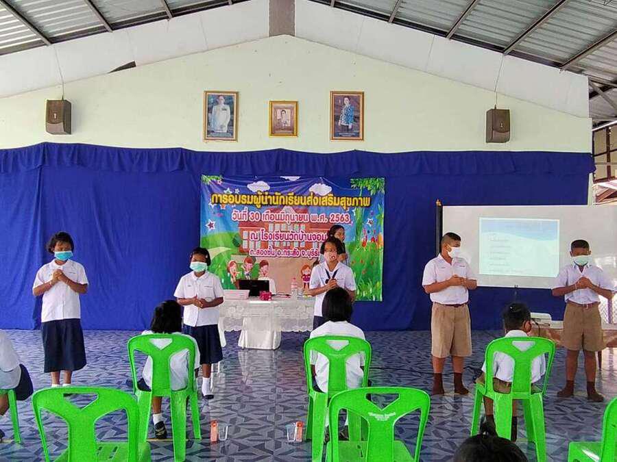 วันที่ ๓๐ มิถุนายน ๒๕๖๓ โรงเรียนวัดบ้านจอมได้จัดกิจกรรมอบรมผู้นำนักเรียนด้านส่งเสริมสุขภาพ เพื่อเป็นผู้นำในการช่วยเหลือดูแลนักเรียนด้วยกัน มีผู้เข้ารับการอบรม จำนวน ๒๐ คน โดยมีคุณหมอ สุนิษา น้ำคำ จาก รพ.สต.บ้านจอม เป็นวิทยากรให้ความรู้ S:0