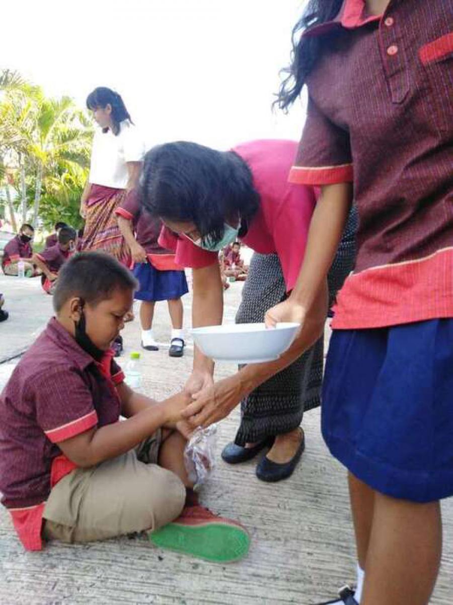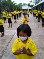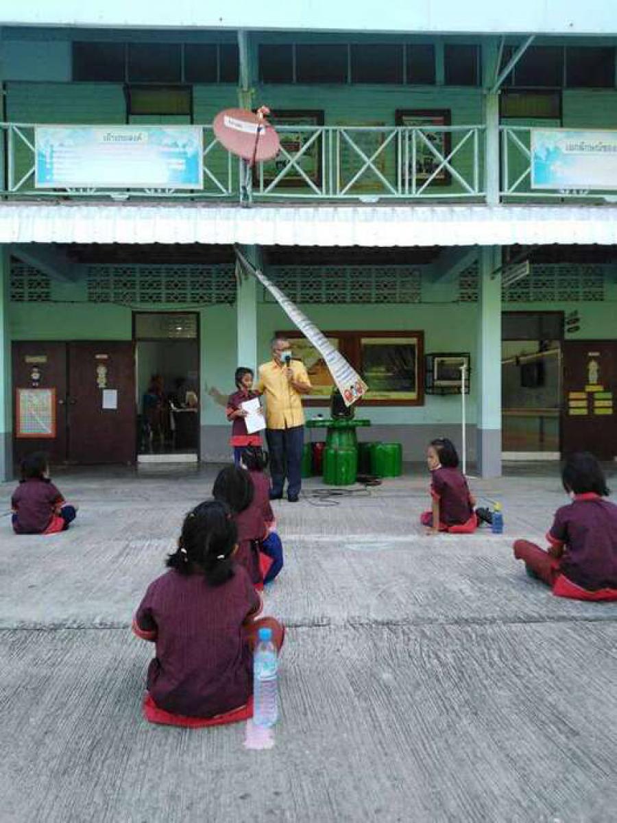 ตอนเช้ากิจกรรมหน้าเสาธง ทานข้าวต้มร้อน S:0