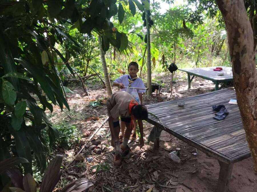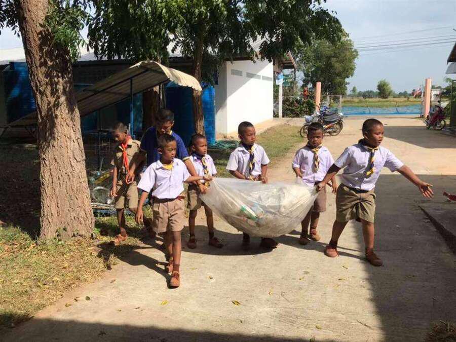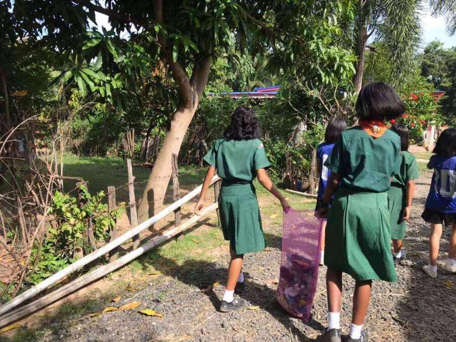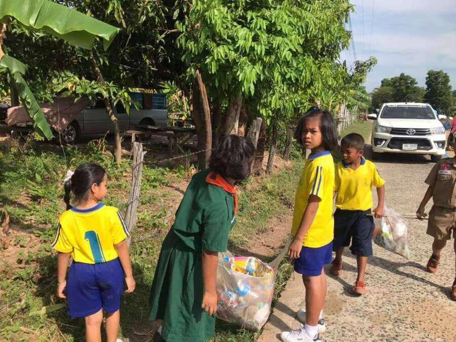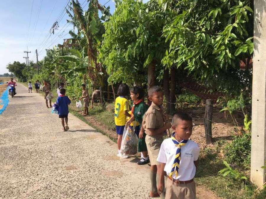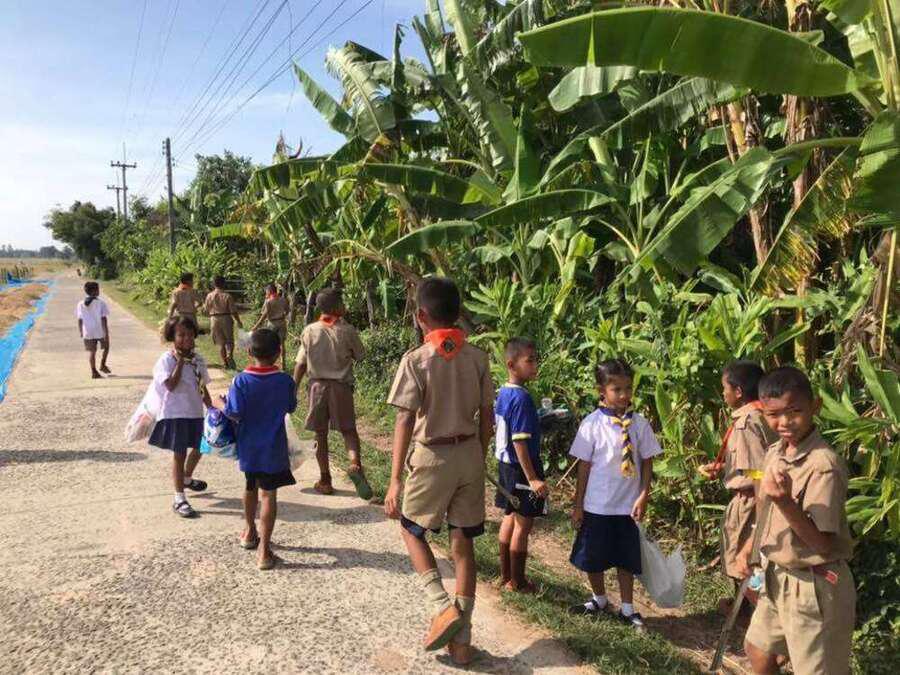 คณะครู นักเรียนร่วมกันทำความสะอาดรอบ ๆ หมู่บ้าน โดยทำให้ชาวบ้านดูเป็นตัวอย่าง S:0