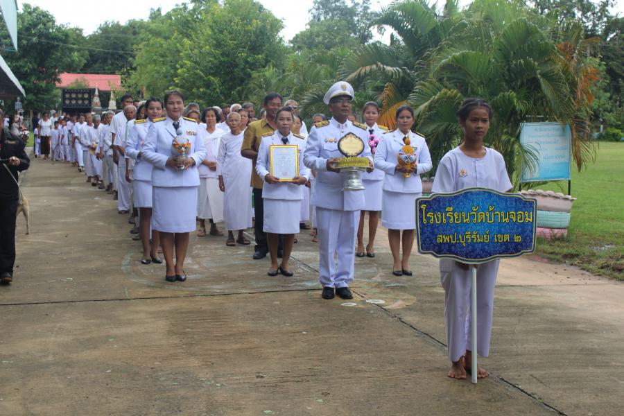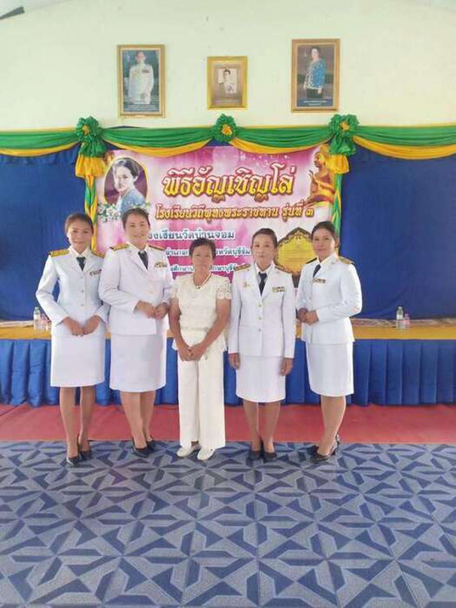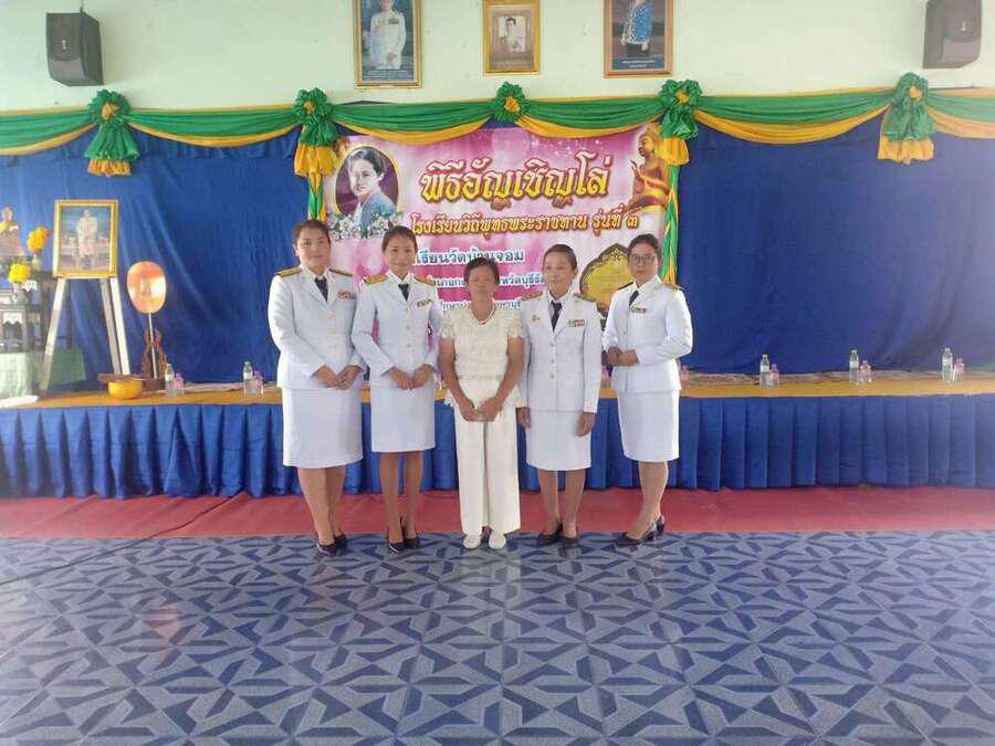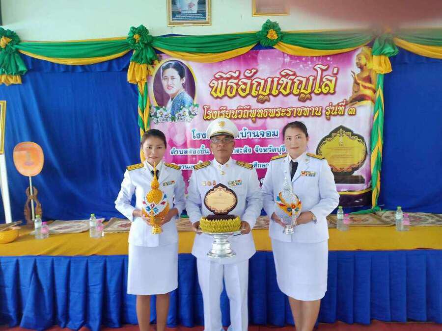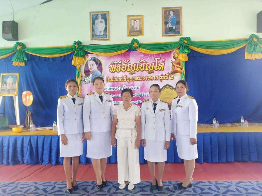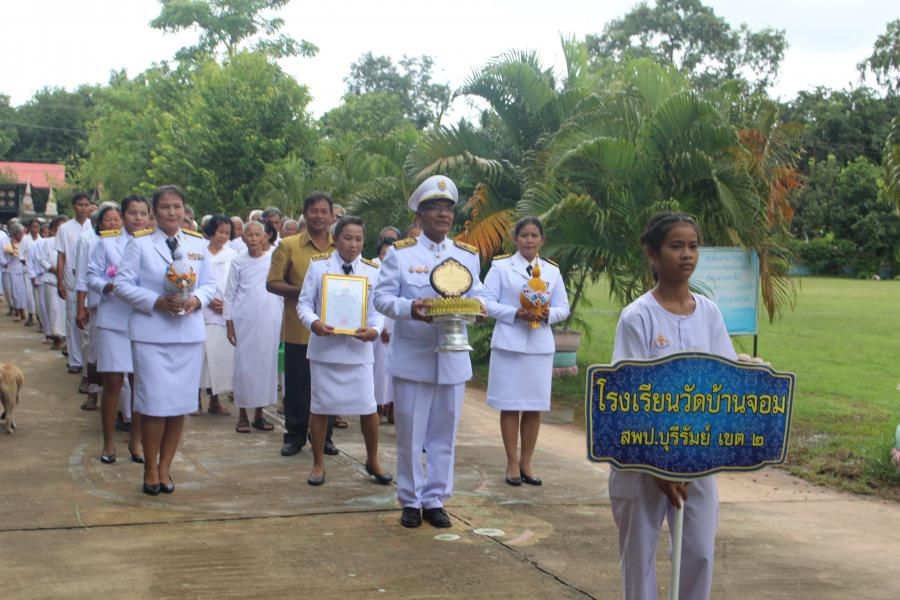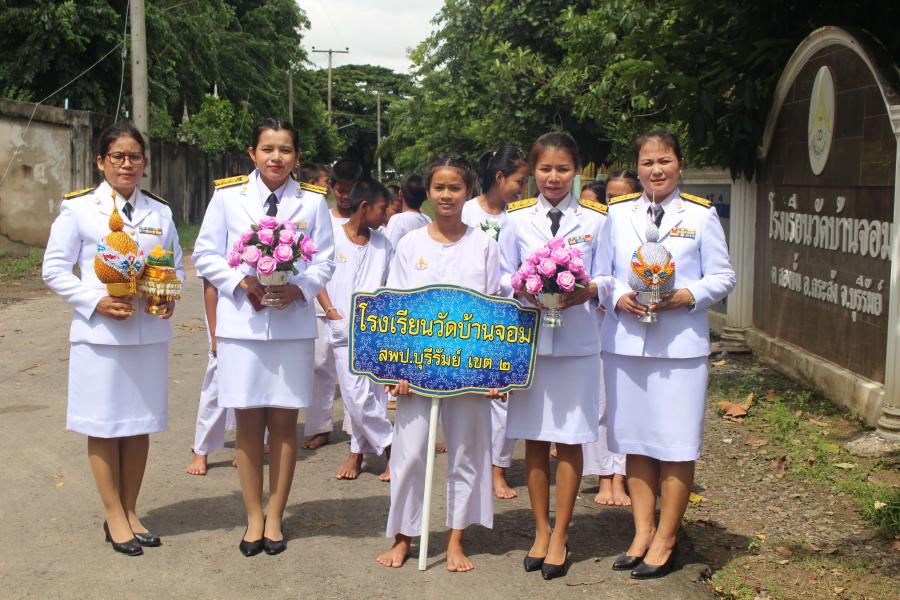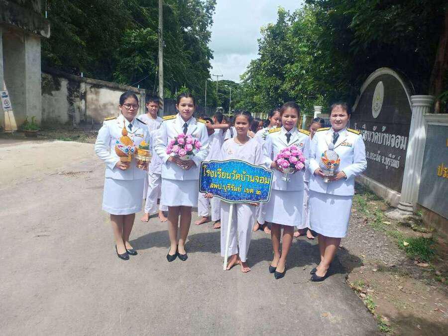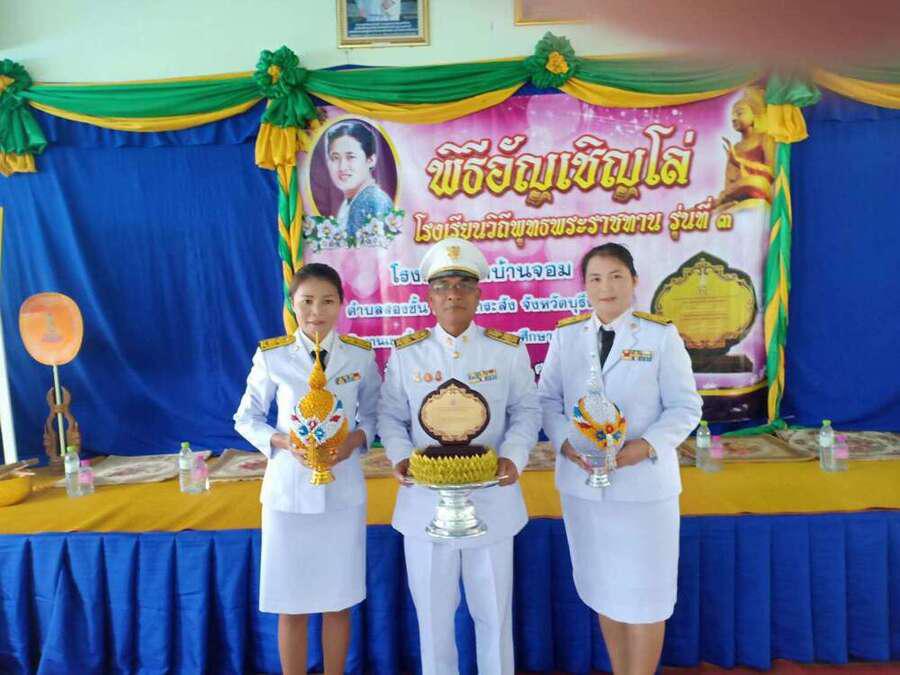 เมื่อวันที่ ๒๑ กันยายน พ.ศ. ๒๕๖๒ โรงเรียนวัดบ้านจอม ได้จัดพิธีอัญเชิญดล่โรงเรียนวิถีพุทธ พระราชทาน รุ่นที่ ๓ โดยมีนายเสริมฤทธิ์ หวายฤทธิ์ธนกุล ผอ.สพป.บุรีรัมย์ เขต ๒ เป็นประธานในพิธี S:0