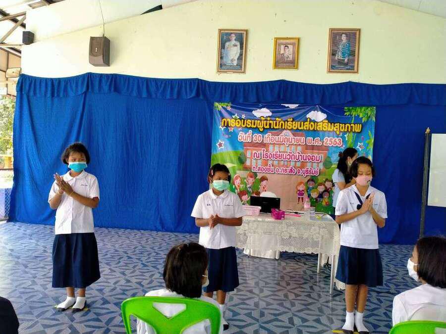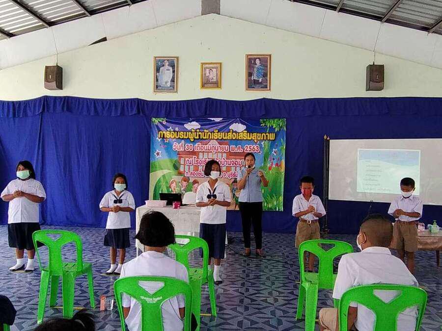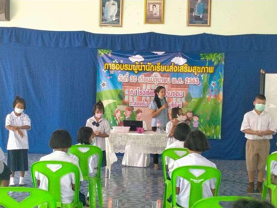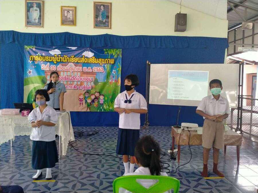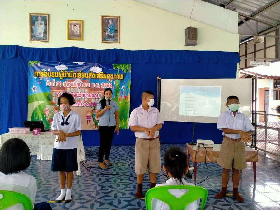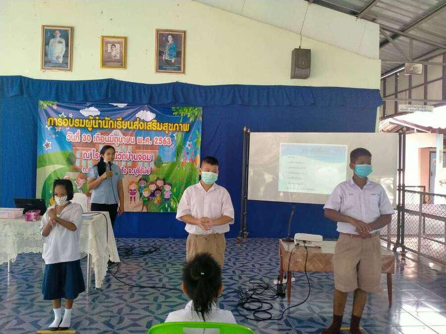 วันที่ ๓๐ มิถุนายน ๒๕๖๓ โรงเรียนวัดบ้านจอมได้จัดกิจกรรมอบรมผู้นำนักเรียนด้านส่งเสริมสุขภาพ เพื่อเป็นผู้นำในการช่วยเหลือดูแลนักเรียนด้วยกัน มีผู้เข้ารับการอบรม จำนวน ๒๐ คน โดยมีคุณหมอ สุนิษา น้ำคำ จาก รพ.สต.บ้านจอม เป็นวิทยากรให้ความรู้ S:0