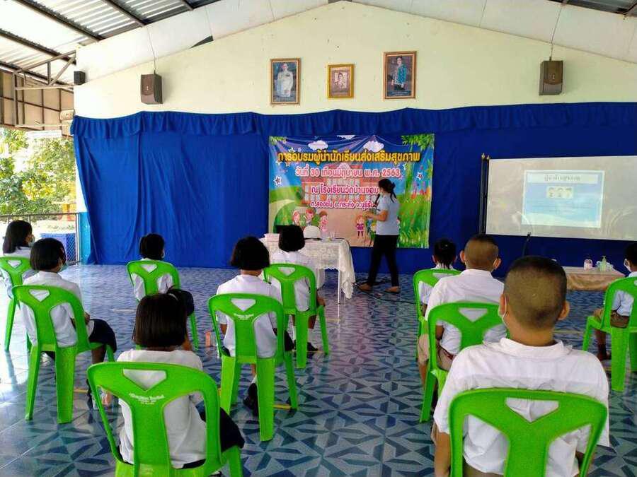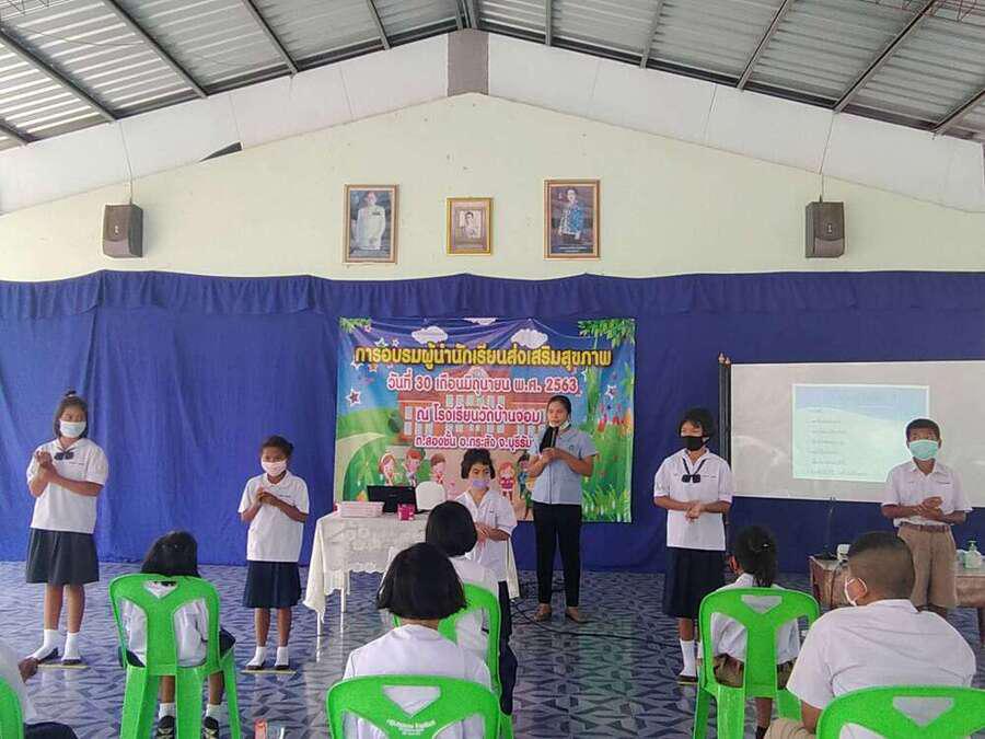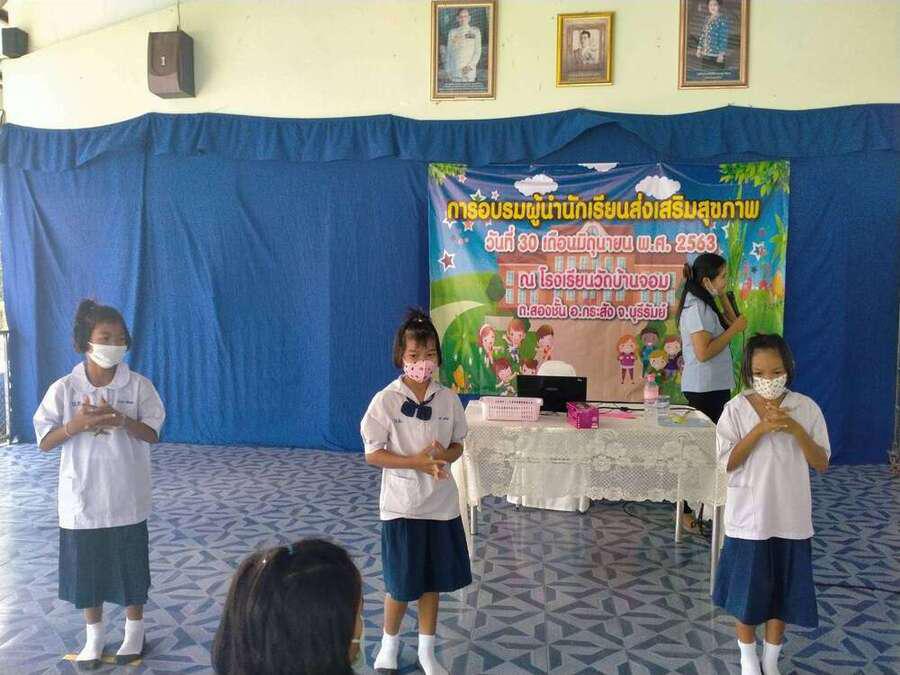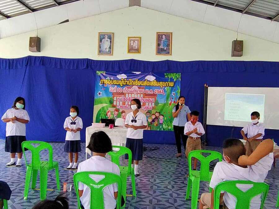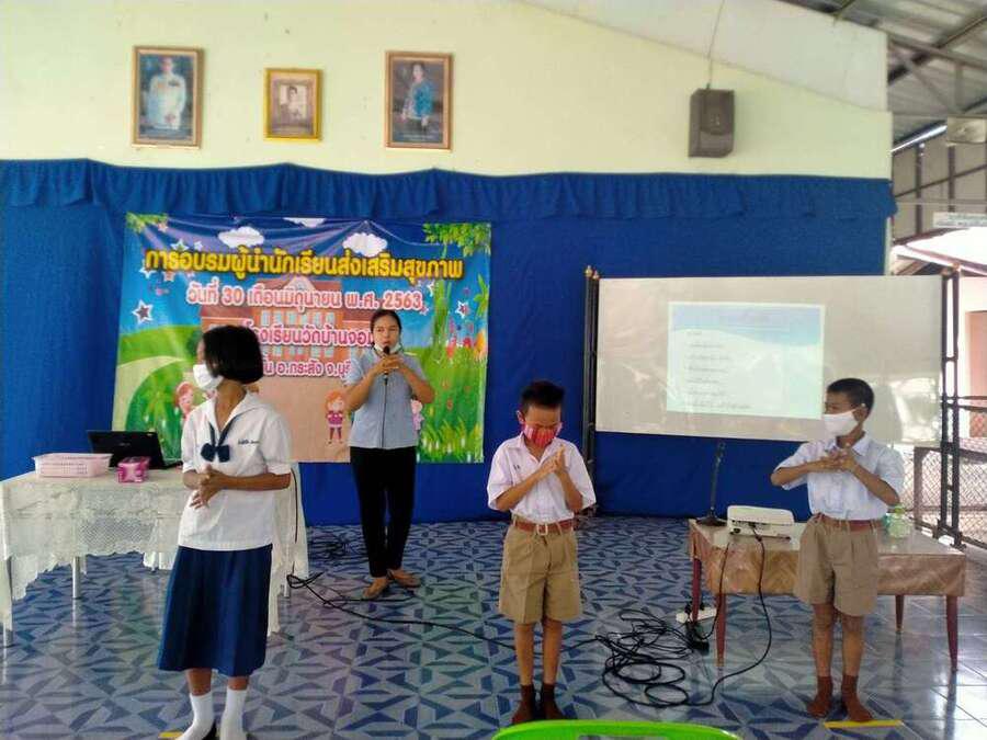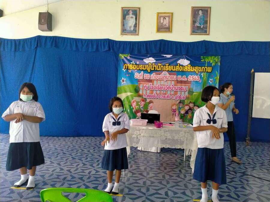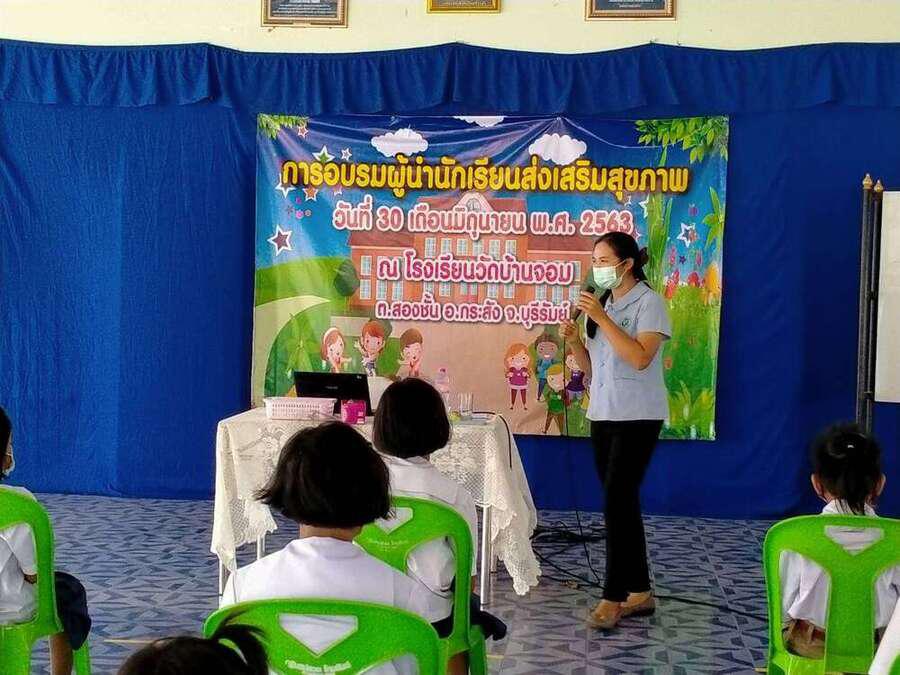 วันที่ ๓๐ มิถุนายน ๒๕๖๓ โรงเรียนวัดบ้านจอมได้จัดกิจกรรมอบรมผู้นำนักเรียนด้านส่งเสริมสุขภาพ เพื่อเป็นผู้นำในการช่วยเหลือดูแลนักเรียนด้วยกัน มีผู้เข้ารับการอบรม จำนวน ๒๐ คน โดยมีคุณหมอ สุนิษา น้ำคำ จาก รพ.สต.บ้านจอม เป็นวิทยากรให้ความรู้ S:0