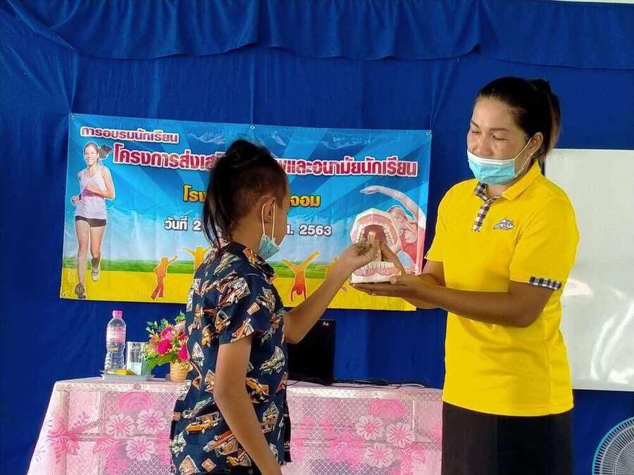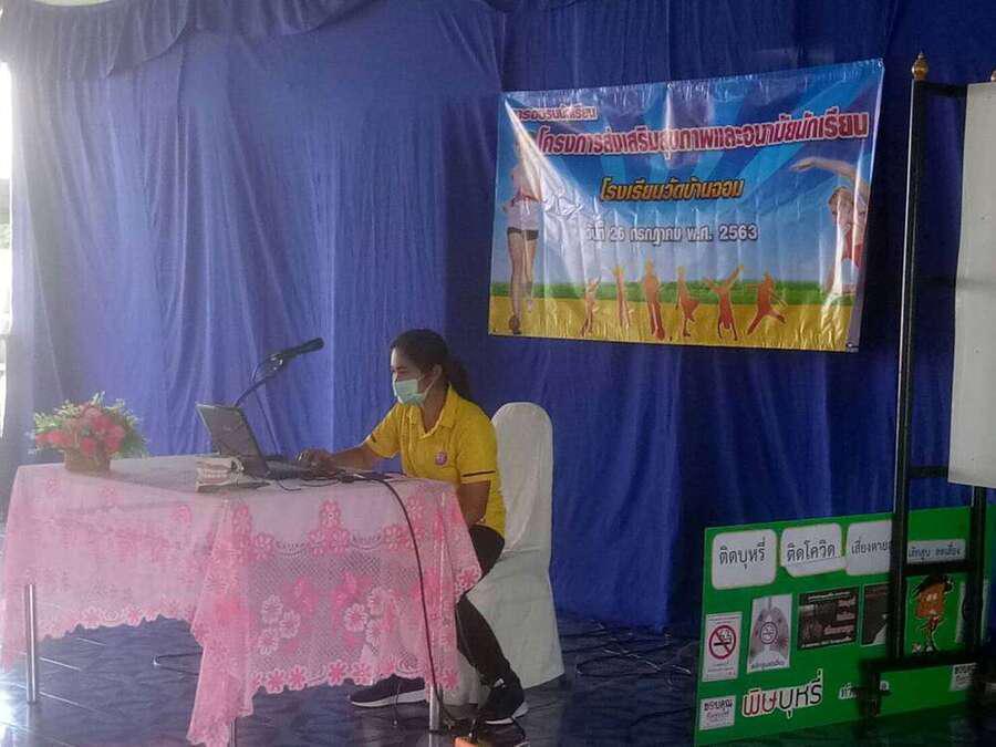 เมื่อวันที่ ๒๖ กรกฎาคม ๒๕๖๓ โรงเรียนวัดบ้านจอม ได้จัดโครงการส่งเสริมสุขภาพและอนามัยนักเรียน โดยได้รับงบประมาณ สปสช.ผ่านเทศบาลตำบลสองชั้น จำนวน ๑๐,๐๐๐ บาท ได้รับเกียรติจาก นายธวัชชัย กิรัมย์ ผู้อำนวยการโรงเรียน เป็นประธานเปิดและให้โอวาทแก่นักเรียนเพื่อเป็นแนวทางในการพัฒนาสุขภาพนักเรียนสู่การปฏิบัติที่ดี และมีคุณหมอสุนิษา น้ำคำ เป็นวิทยากรให้ความรู้ พร้อมนี้ต้องขอขอบคุณคณะครูที่นำผลและกำชับนักเรียนสู่การปฏิบัติให้มีสุขภาพพลานามัยที่สมบูรณ์สืบไป S:0