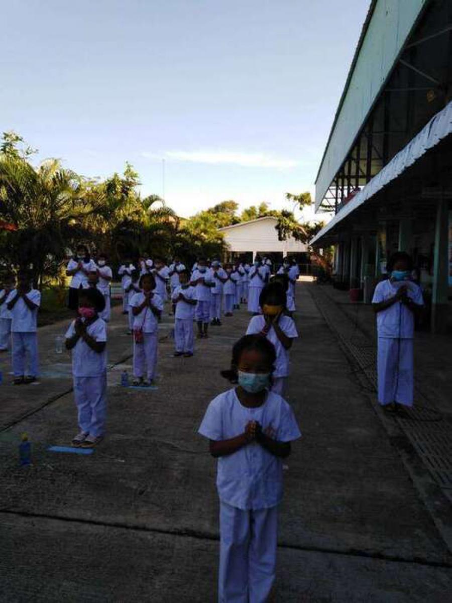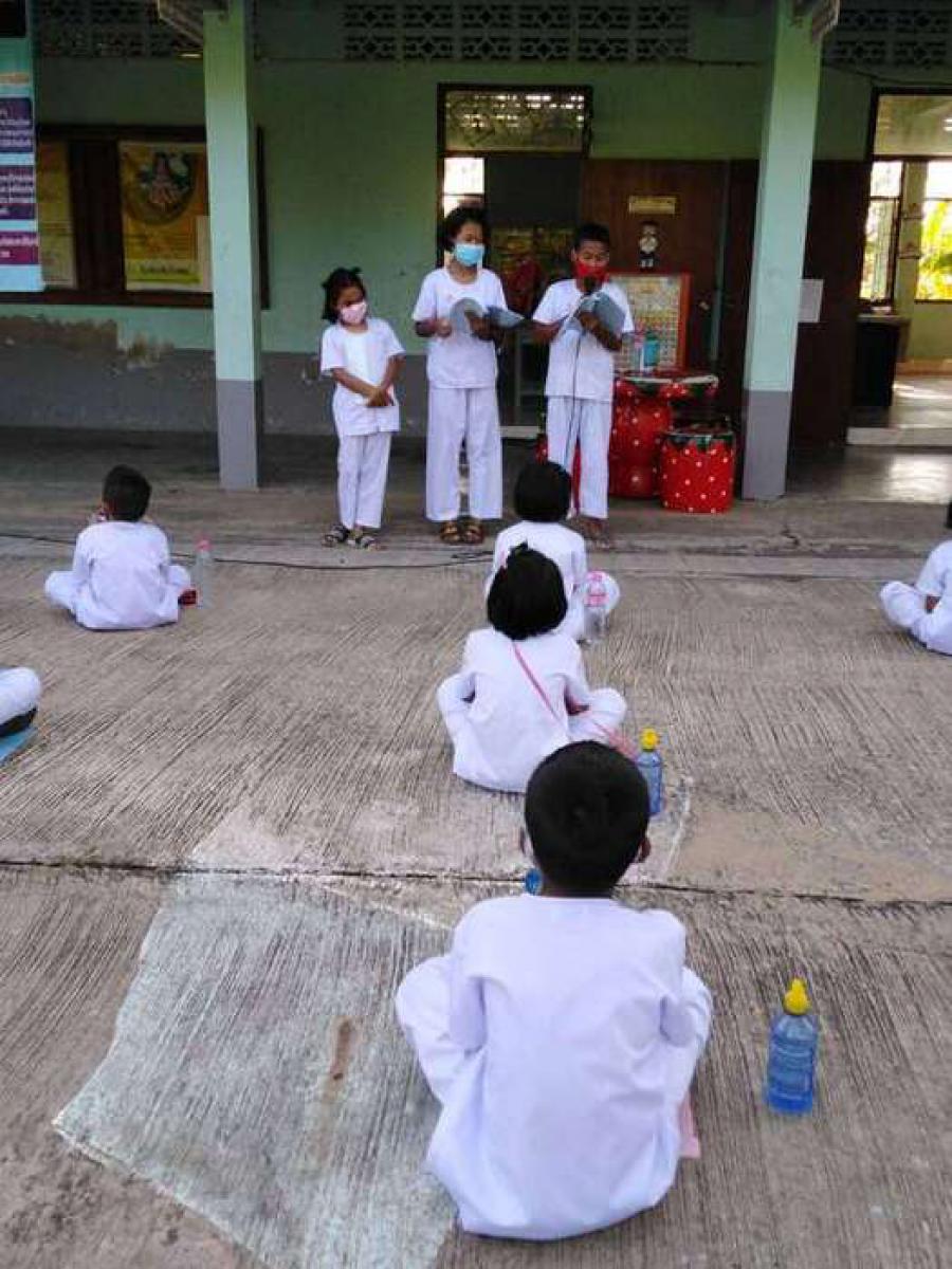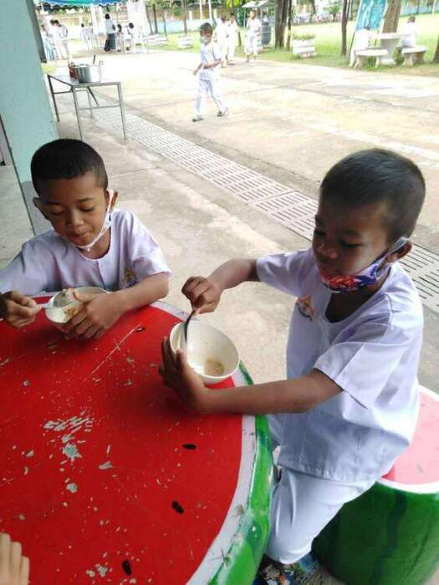 ตอนเช้ากิจกรรมหน้าเสาธง ทานข้าวต้มร้อน S:0