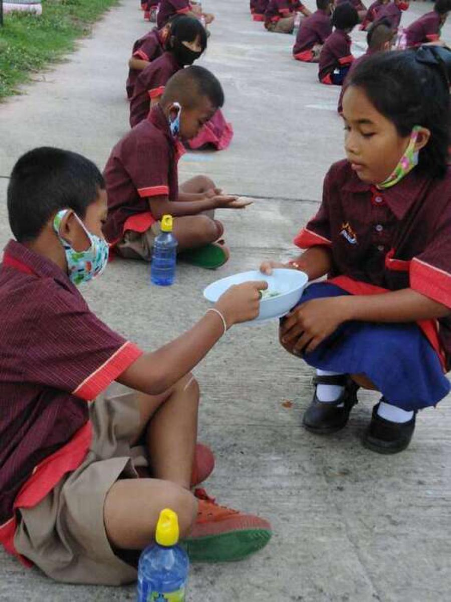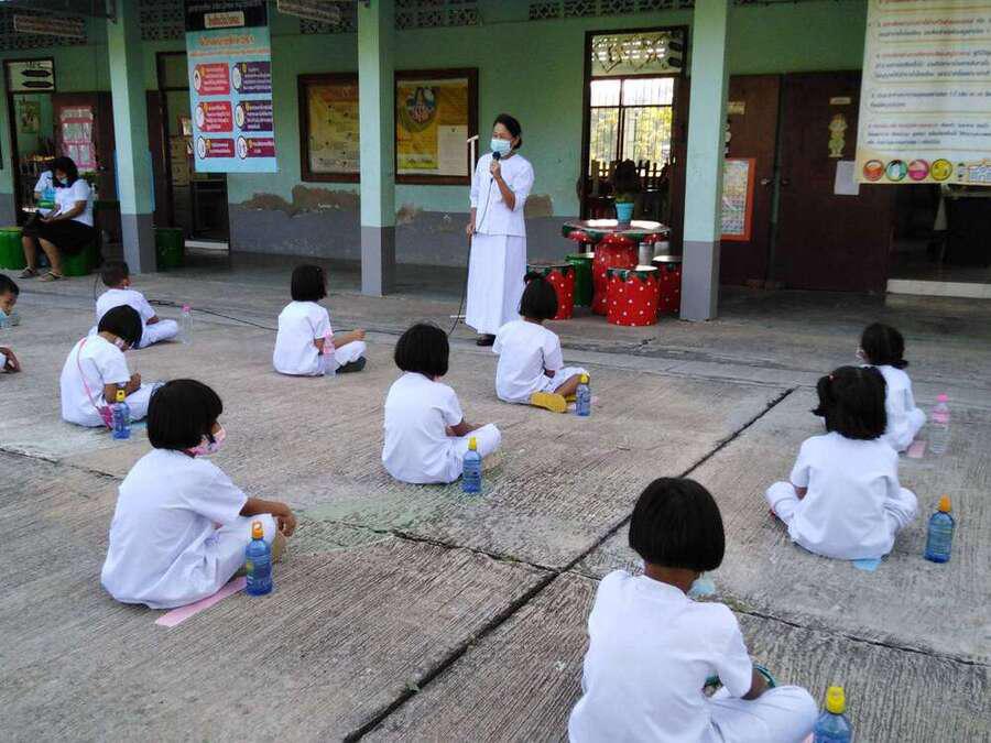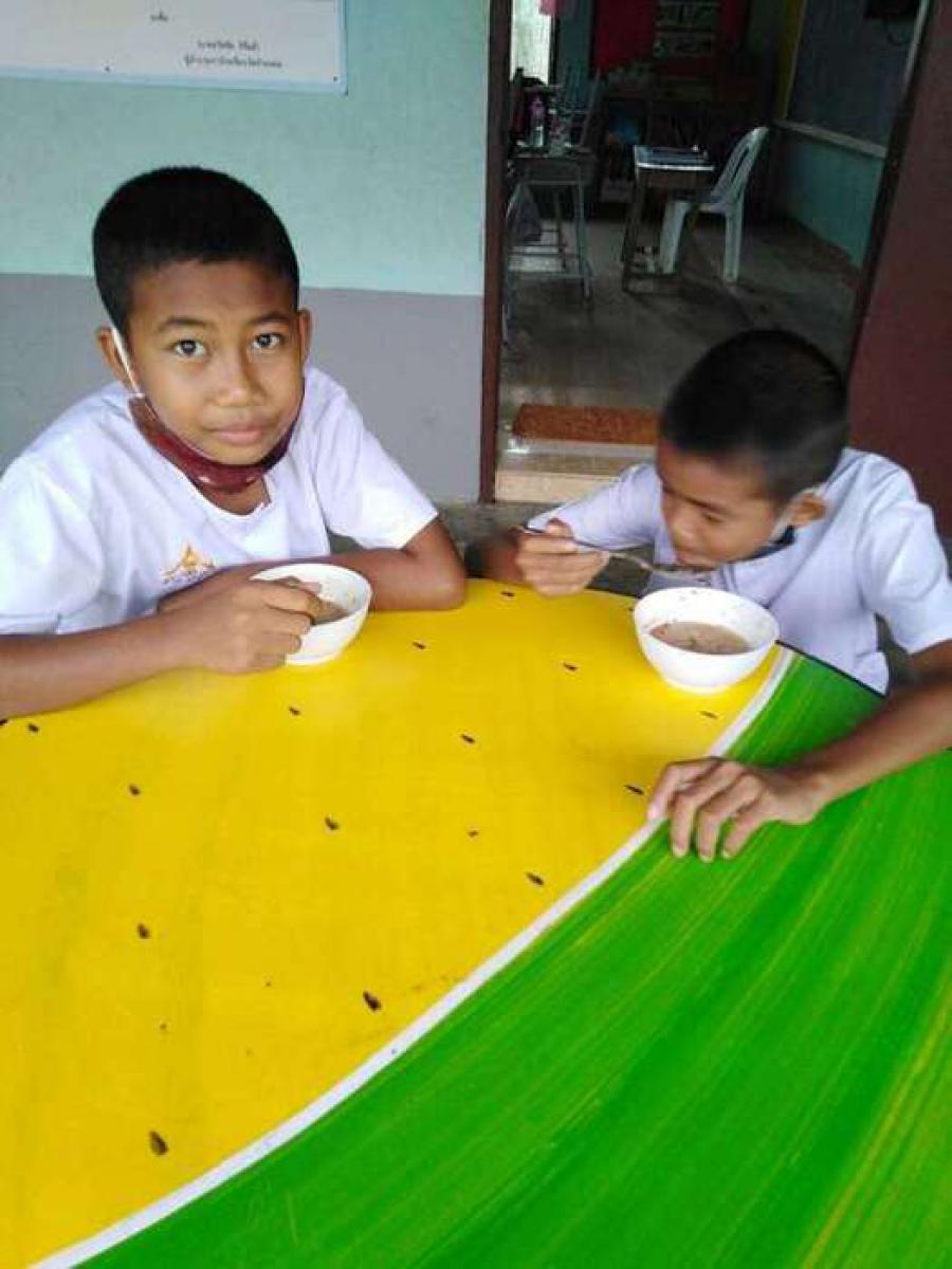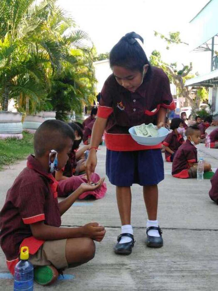 ตอนเช้ากิจกรรมหน้าเสาธง ทานข้าวต้มร้อน S:0