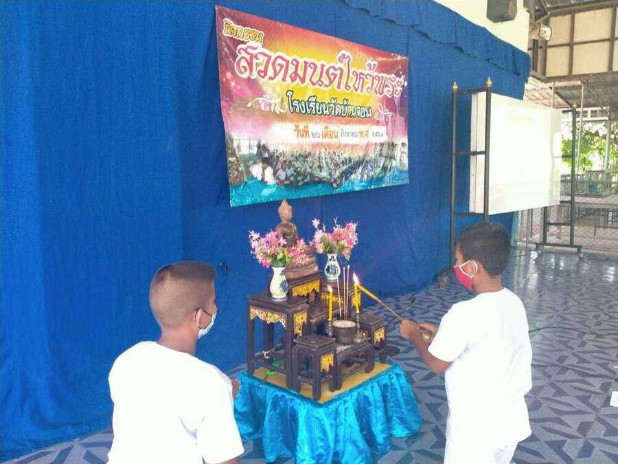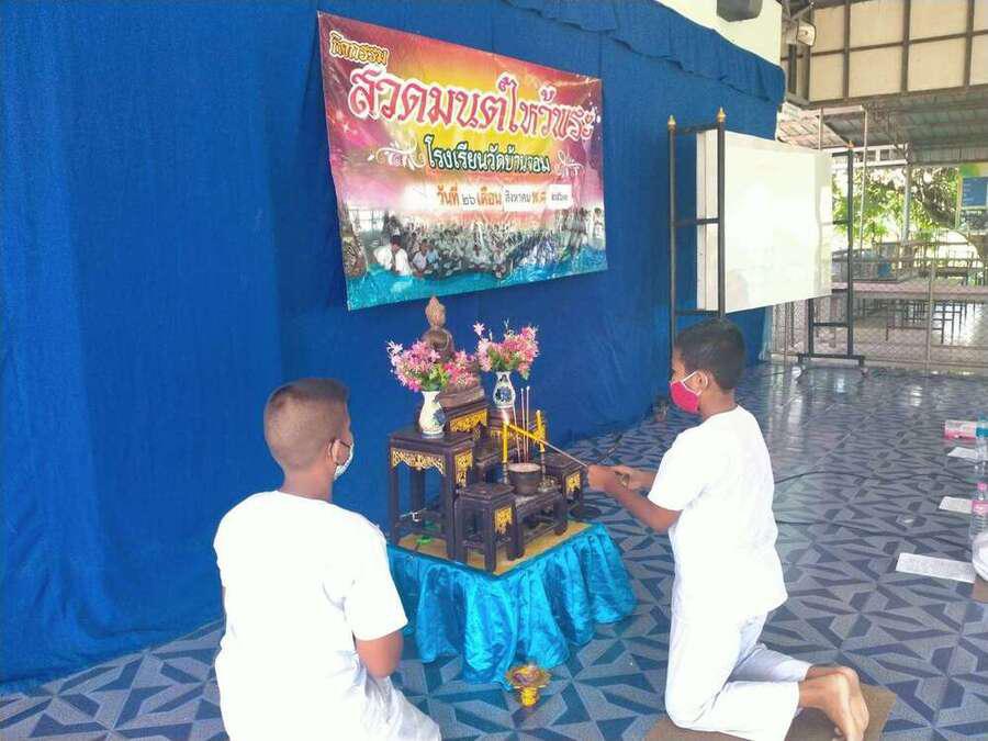 โรงเรียนได้จัดกิจกรรมสวดมนต์ไหว้พระ เพื่อเป็นพุทธศาสนิกชนที่ดี สามารถกิน อยู่ ดู ฟังเป็นอย่างมีสติ รู้ตัวตนเองอยู่ตลอดเวลา S:0
